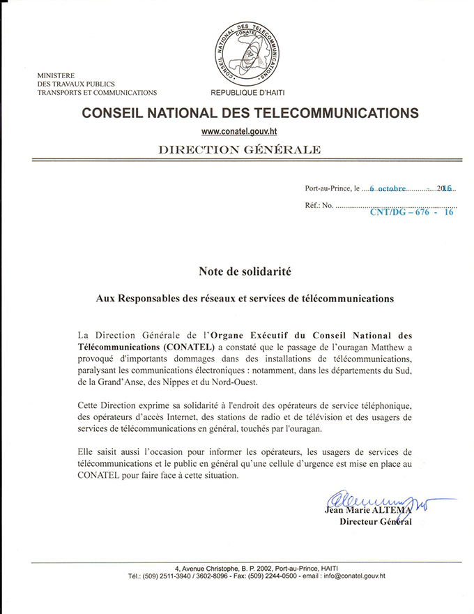 Vous êtes iciHome » Communications » Note de solidarité adressée aux responsables de réseaux et services de télécommunications. Note de solidarité adressée aux responsables de réseaux et services de télécommunications. Partager ce texte images: Tweet