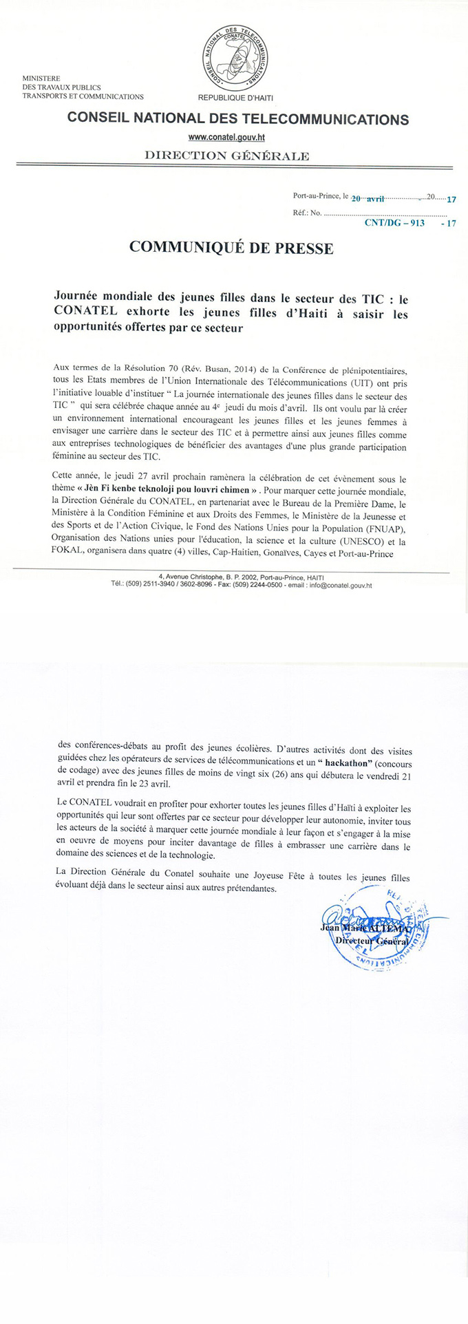 Vous êtes iciHome » Communications » Communiqué de presse du 20 avril 2017 Communiqué de presse du 20 avril 2017 Partager ce texte images: Tweet