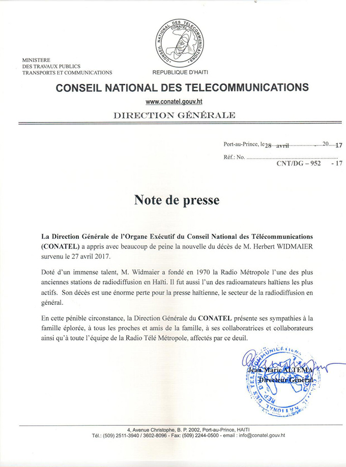 Vous êtes iciHome » Communications » Note de presse saluant la mémoire d'Herby Widmaïer Note de presse saluant la mémoire d'Herby Widmaïer Partager ce texte images: Tweet