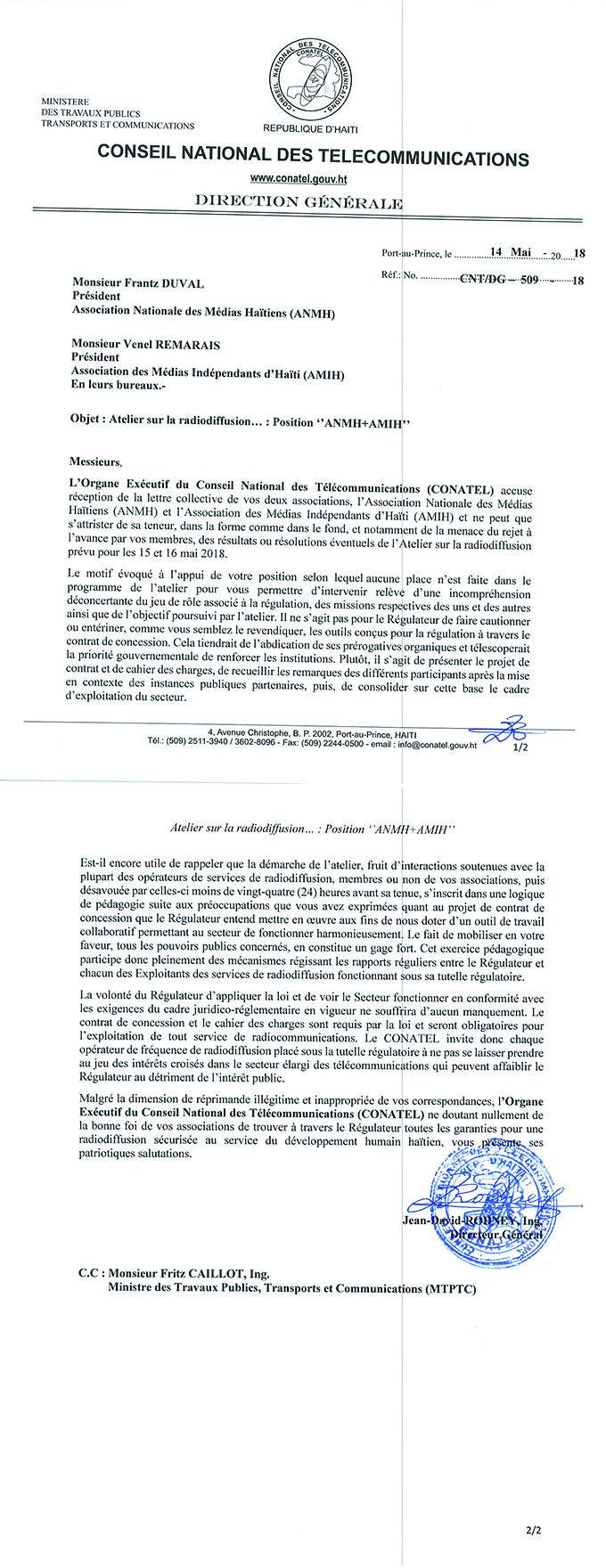 Vous êtes iciHome » Communications » CONATEL | Reponse à la lettre de l'ANHM et l'AMIH CONATEL | Reponse à la lettre de l'ANHM et l'AMIH Partager ce texte images: Tweet