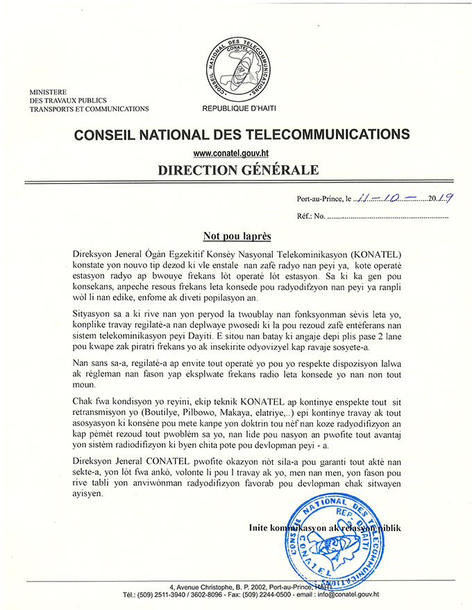 Vous êtes iciHome » Communications » Nòt pou laprès 11 oktòb 2019 Nòt pou laprès 11 oktòb 2019 Partager ce texte images: Tweet